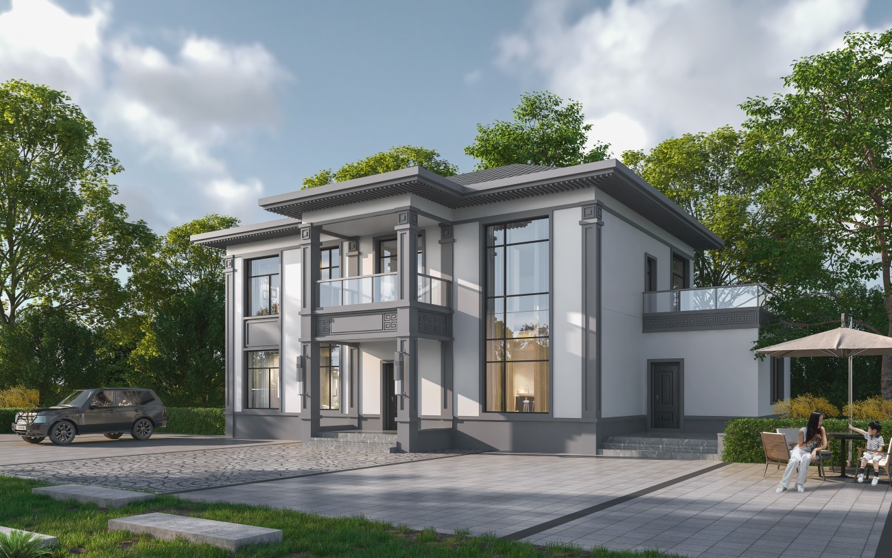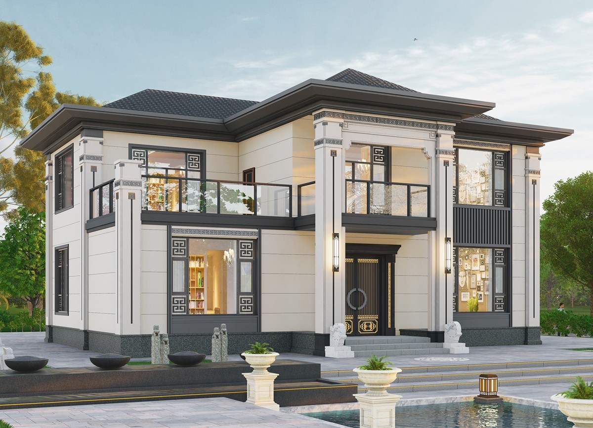 黄冈005 两层新中式(11.36x11.76米)-【易设计】
