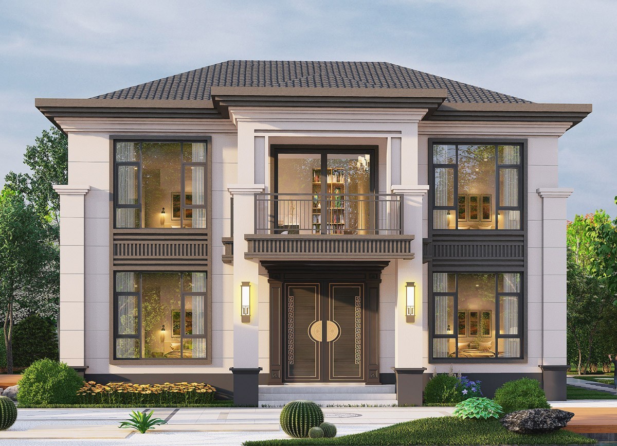 黄冈005 两层新中式(11.36x11.76米)-【易设计】
